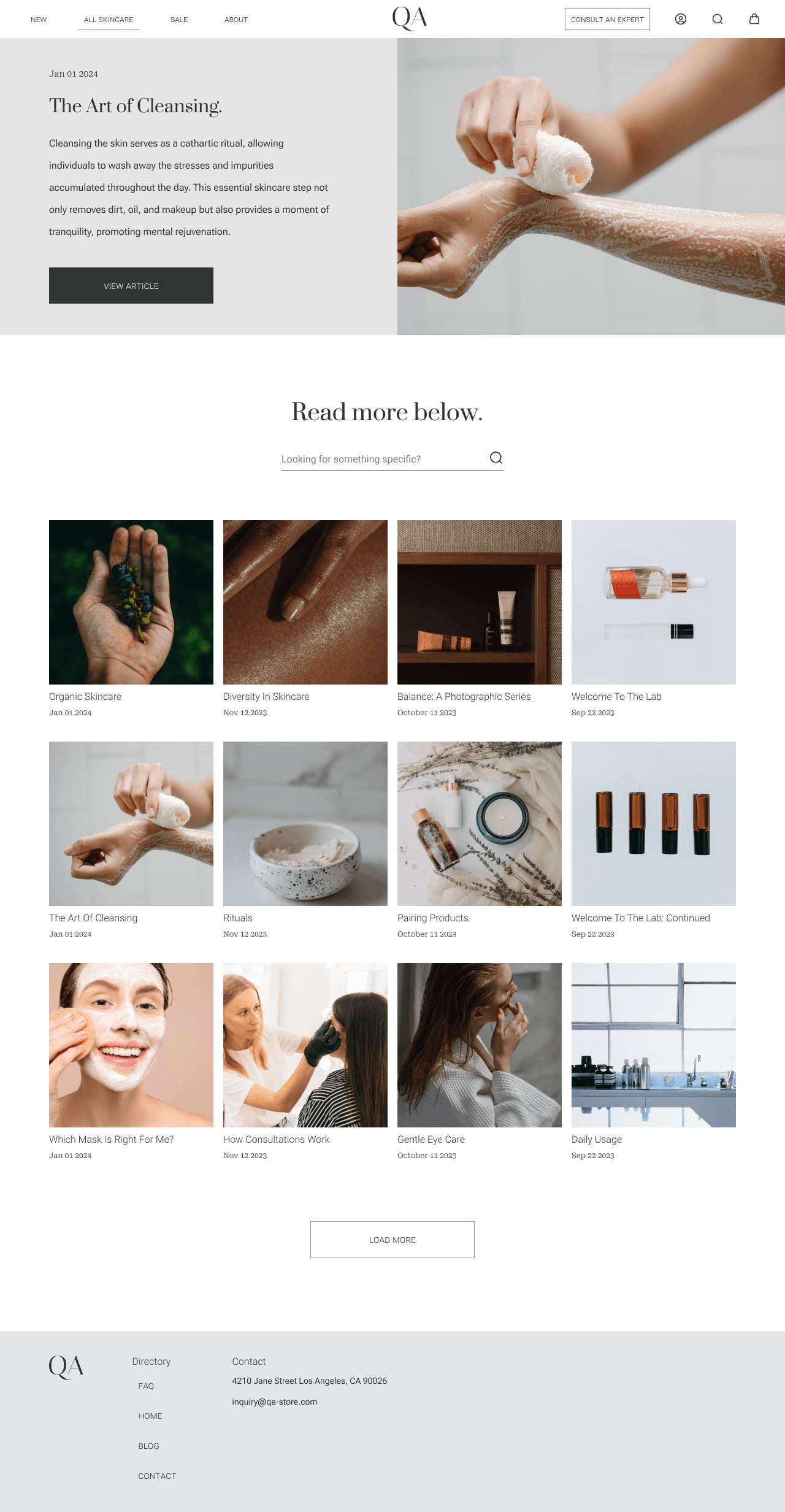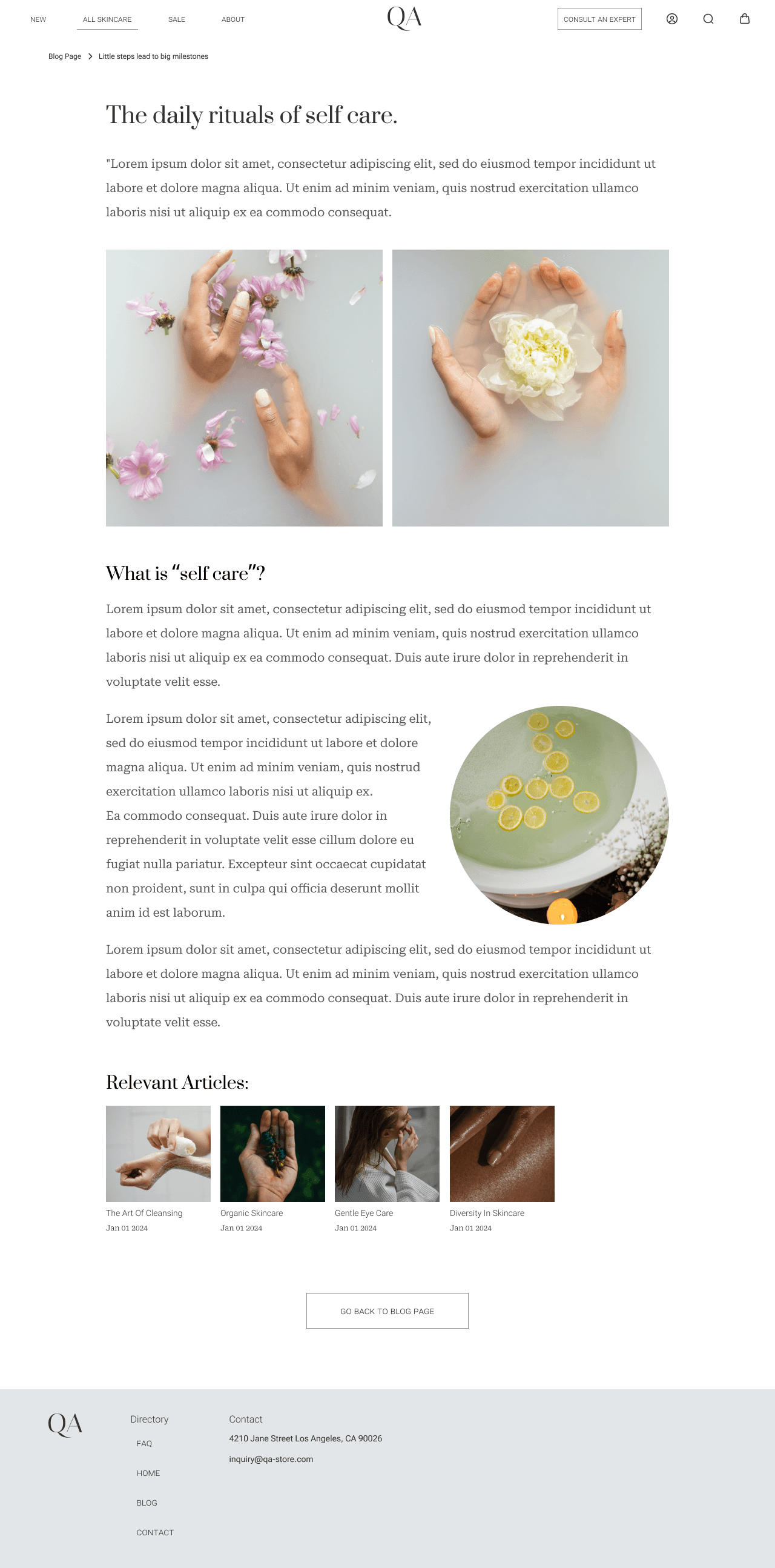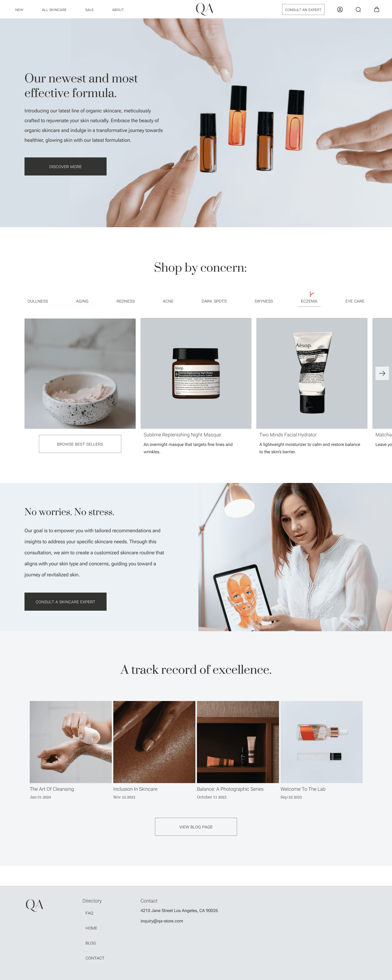 Client requested a collection of reusable Shopify templates with the demo experience showcased through a premium skincare brand.